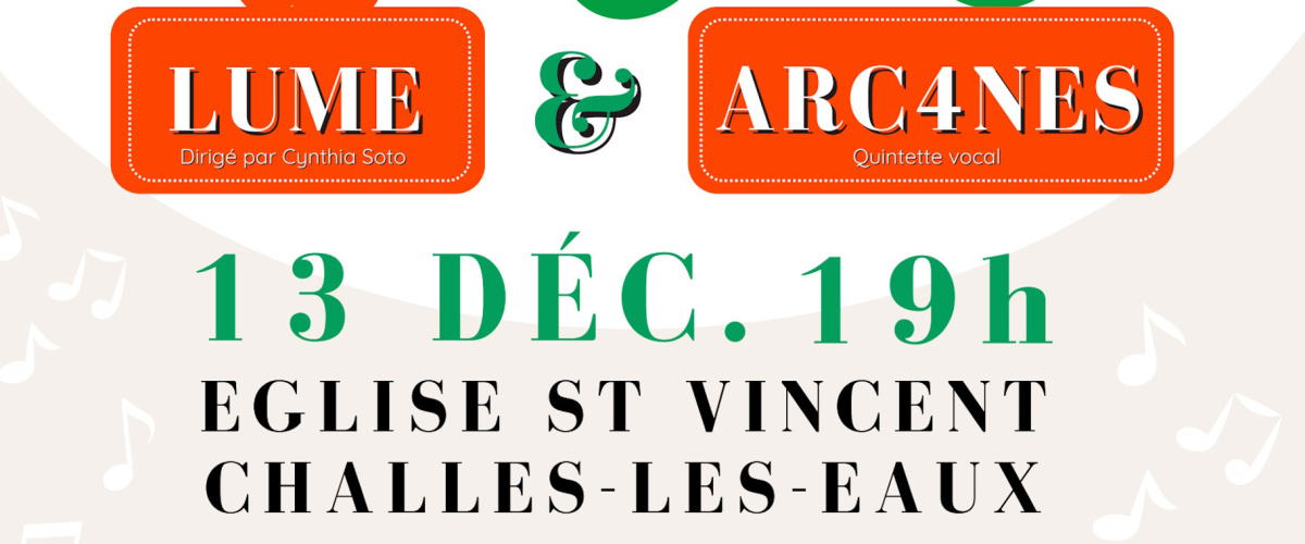 La chorale LUME sous la direction de Cynthia SOTO et le quintette vocal ARC4NES vous proposent des chants du monde et des chants sacrés.