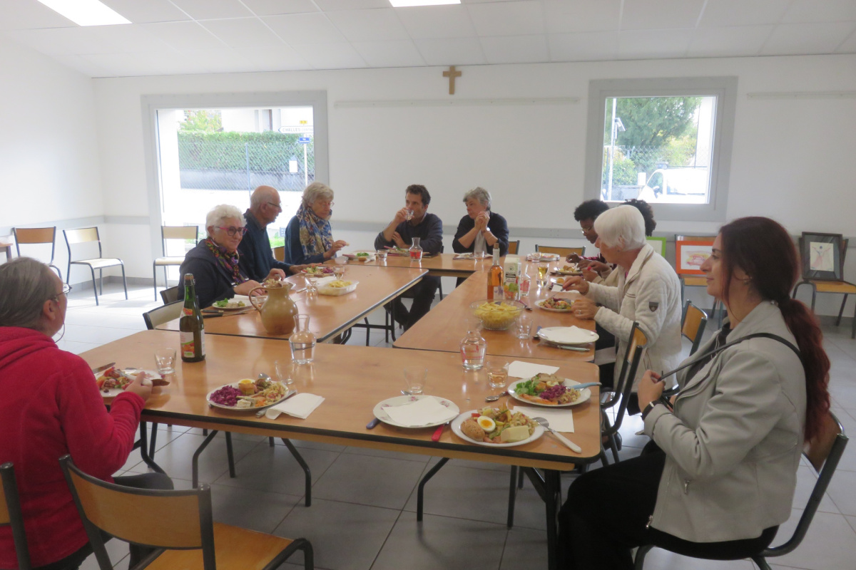 Nous nous sommes retrouvés dès 9h30 à la Maison Saint Vincent, pour partager un café puis la messe fraternelle avec « nos » 3 prêtres, Alexis, Jacob et Cyriaque et une quarantaine de paroissiens, accueillant des personnes en situation de migration (arméniennes, angolais, malaisienne), de confession catholique et anglicane.