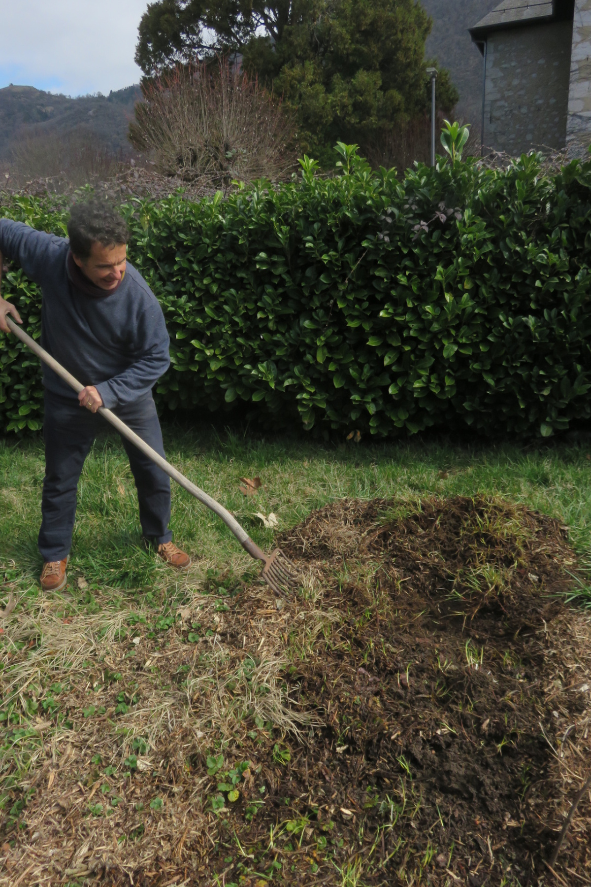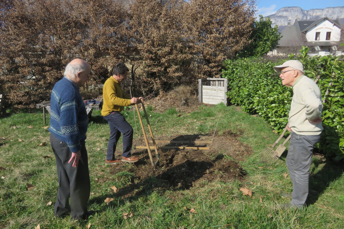 Puis jardinage (notamment préparation du potager) ou discussions amicales avant de déguster un bon repas partagé pour une quinzaine de personnes.