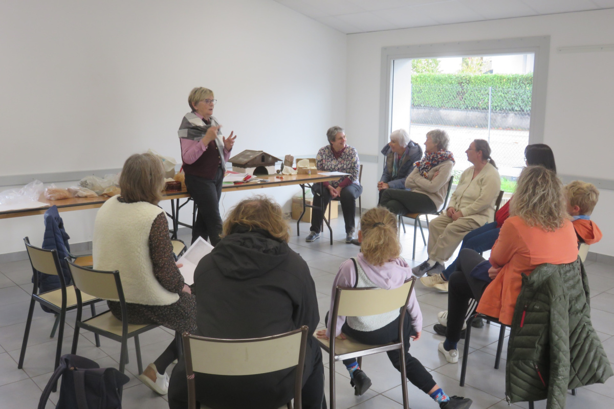L’après-midi, une dizaine de personnes ont participé à « l’atelier crèche » = proposition de Claudine pour fabriquer une crèche pour l’église de Challes.