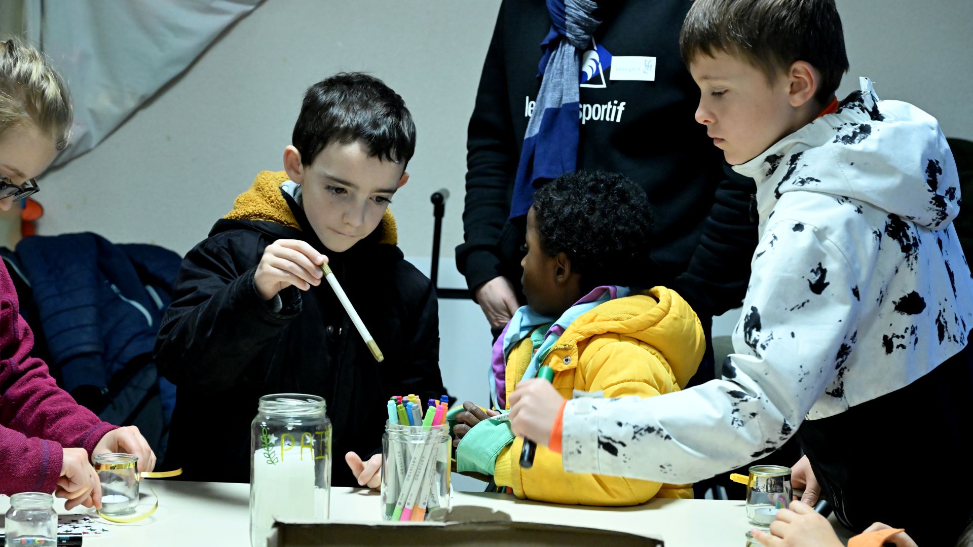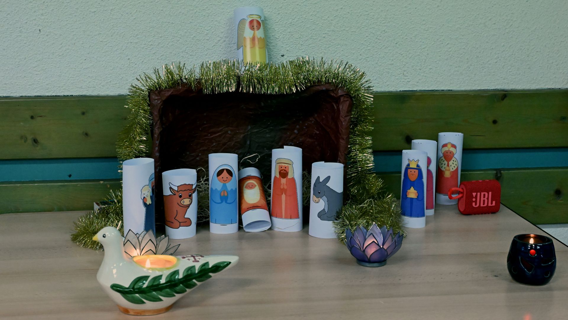 Après l’atelier du récit de Noël avec les marionnettes puis les enfants se répartissent dans les différents groupes pour