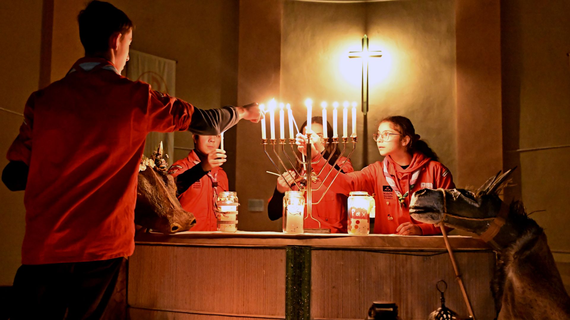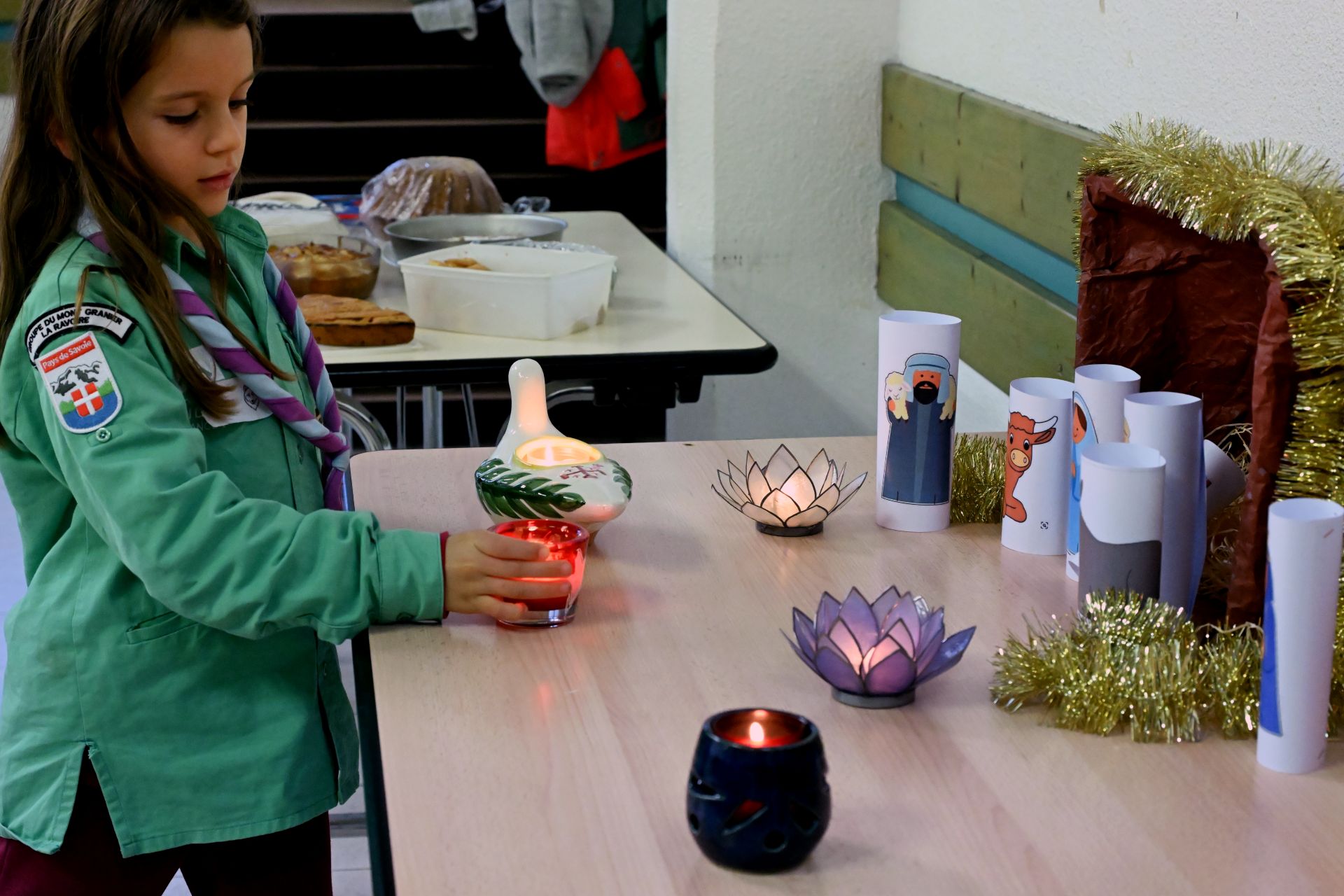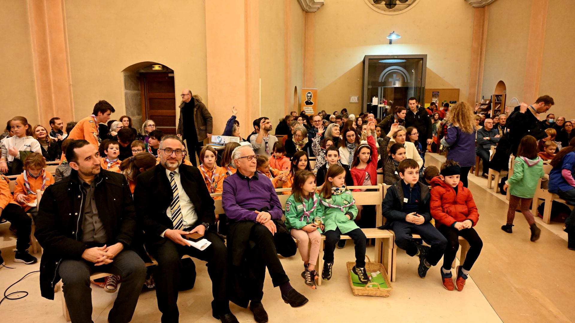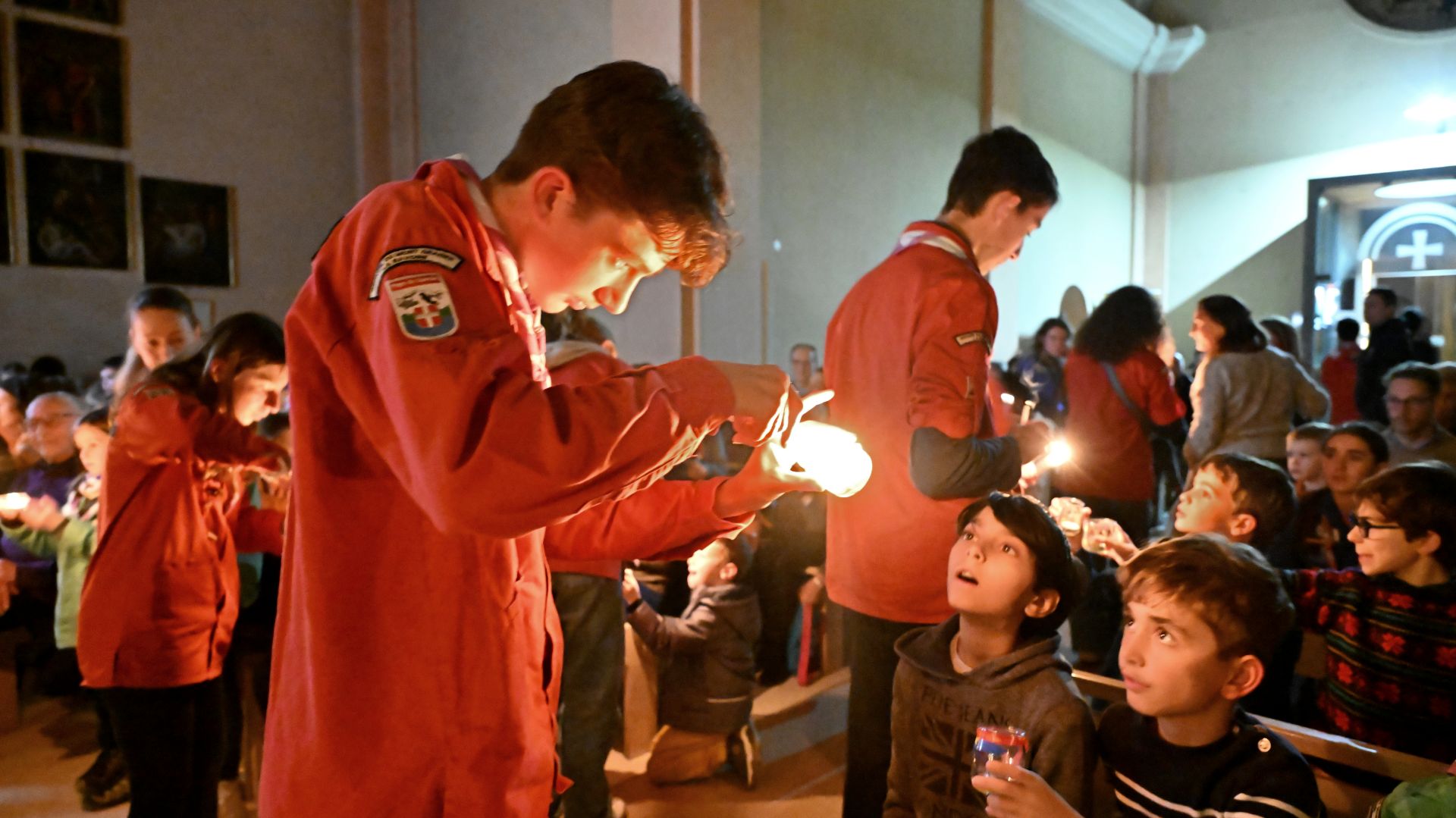 Les scouts donnent la lumière de Bethléem à l’assemblée.