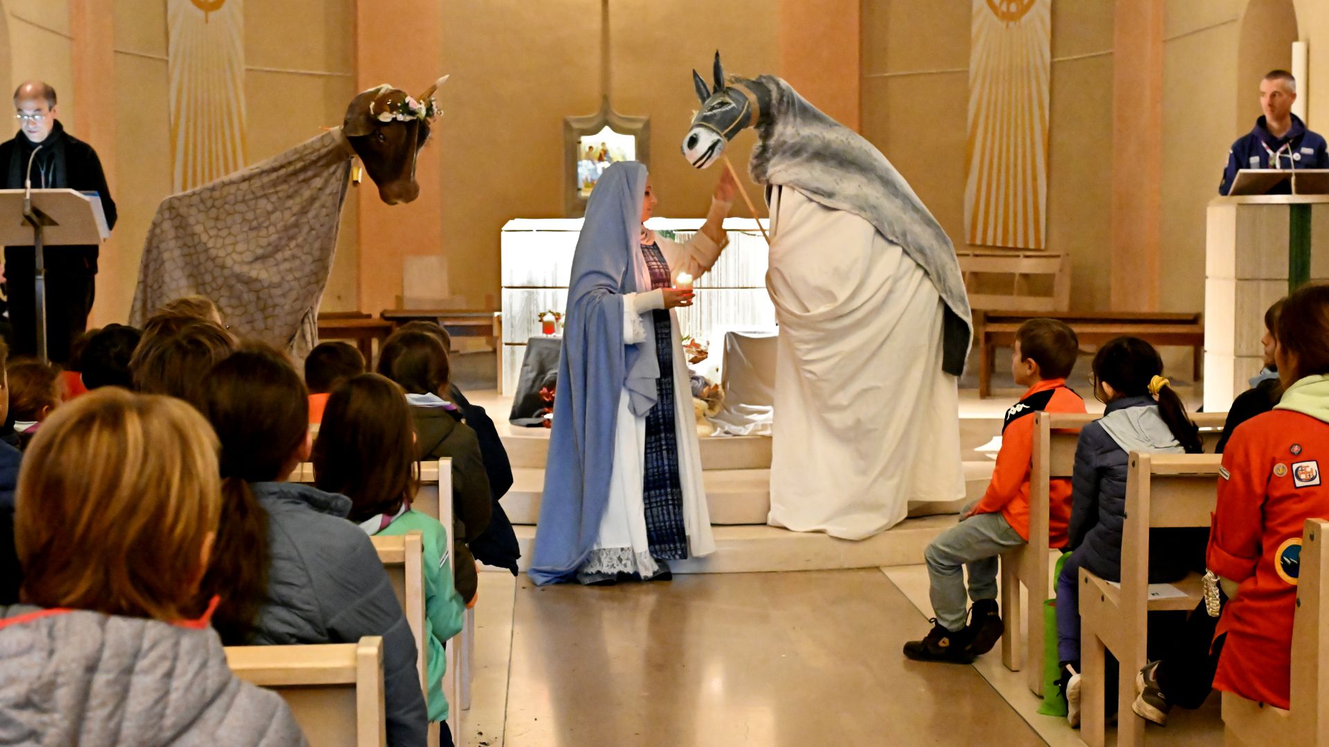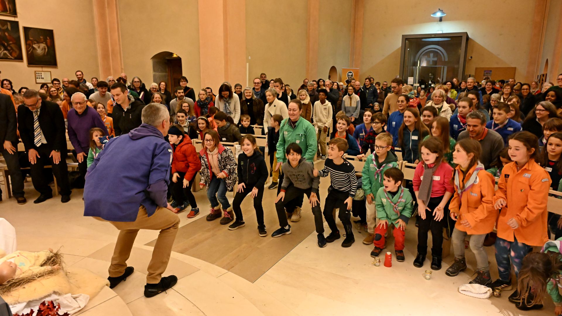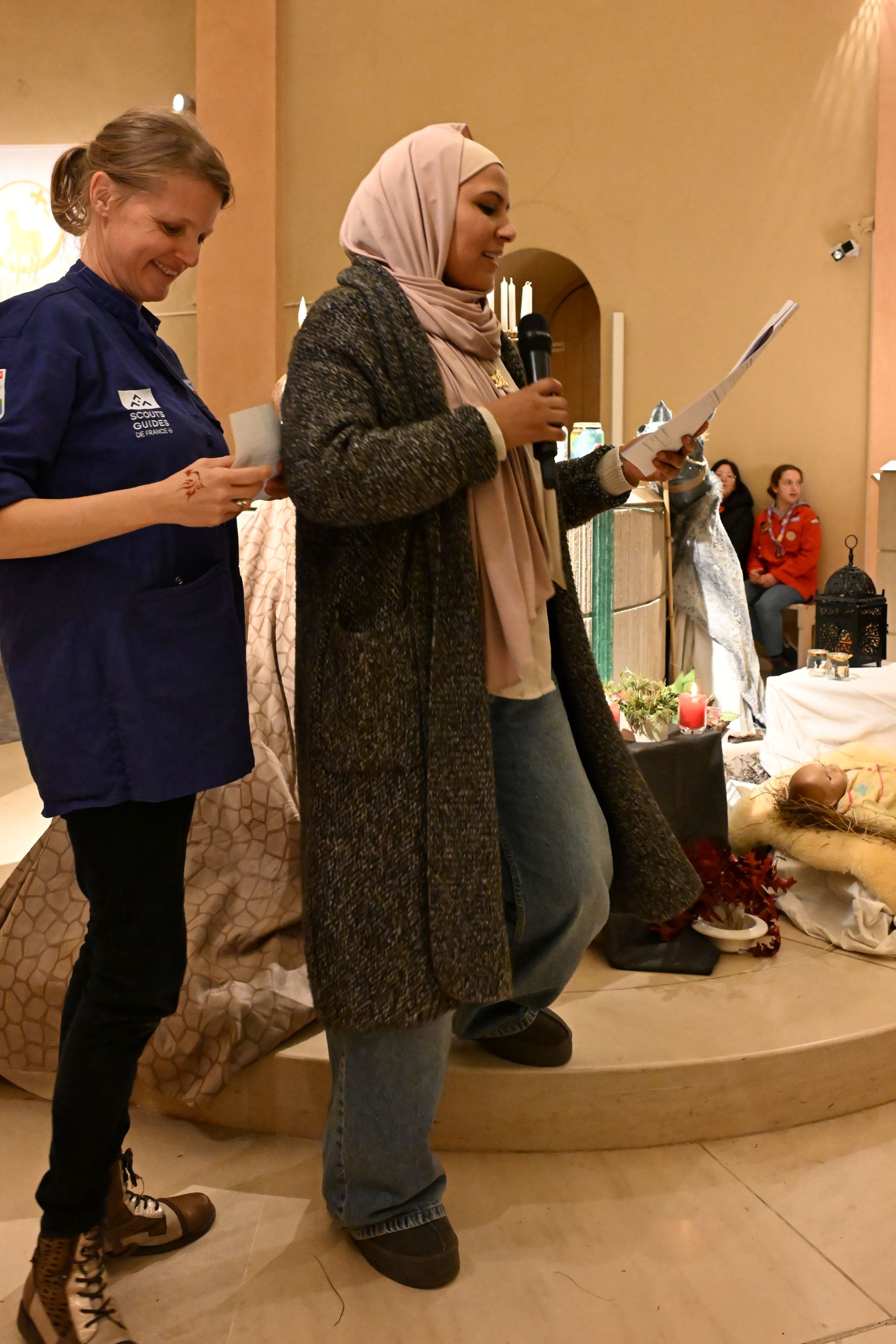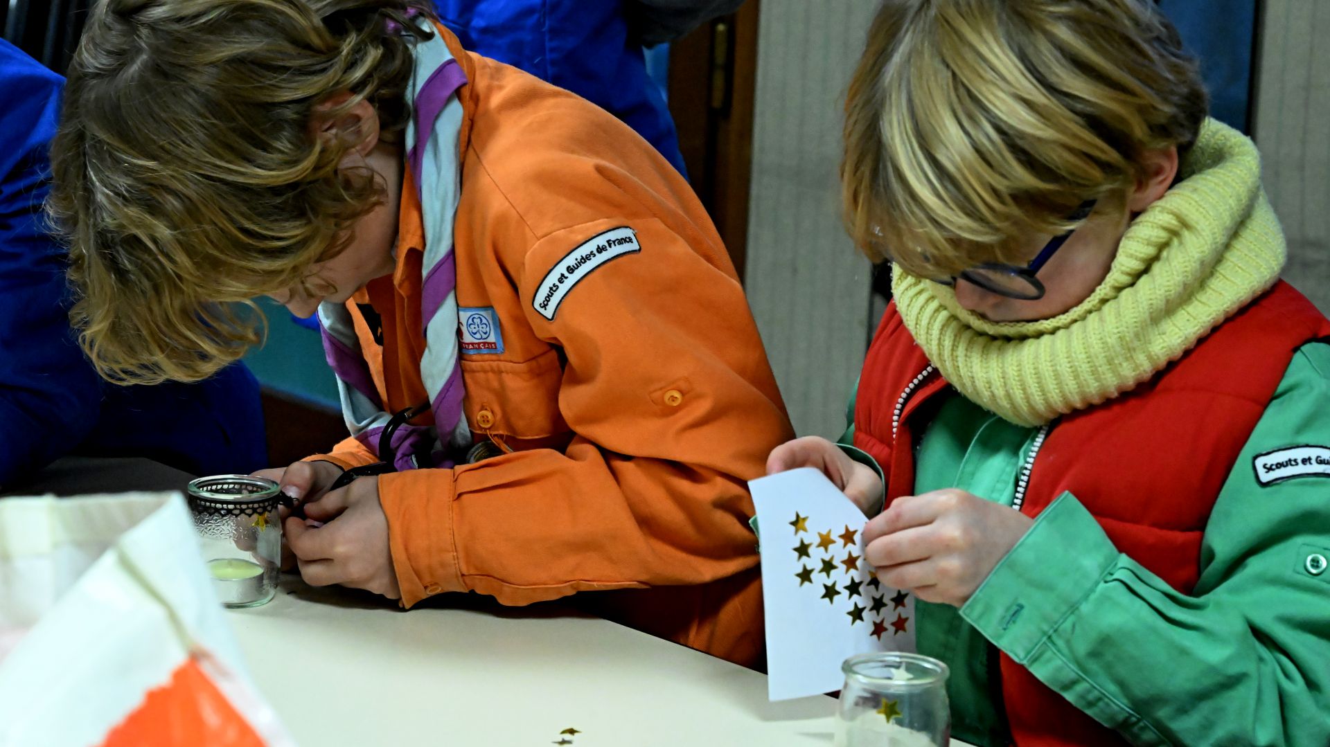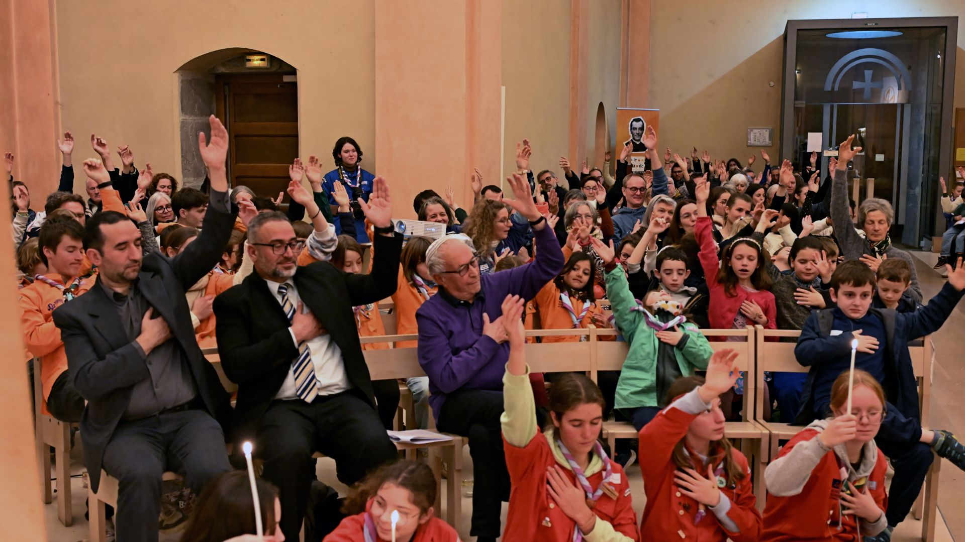 Les scouts donnent la lumière de Bethléem à l’assemblée.