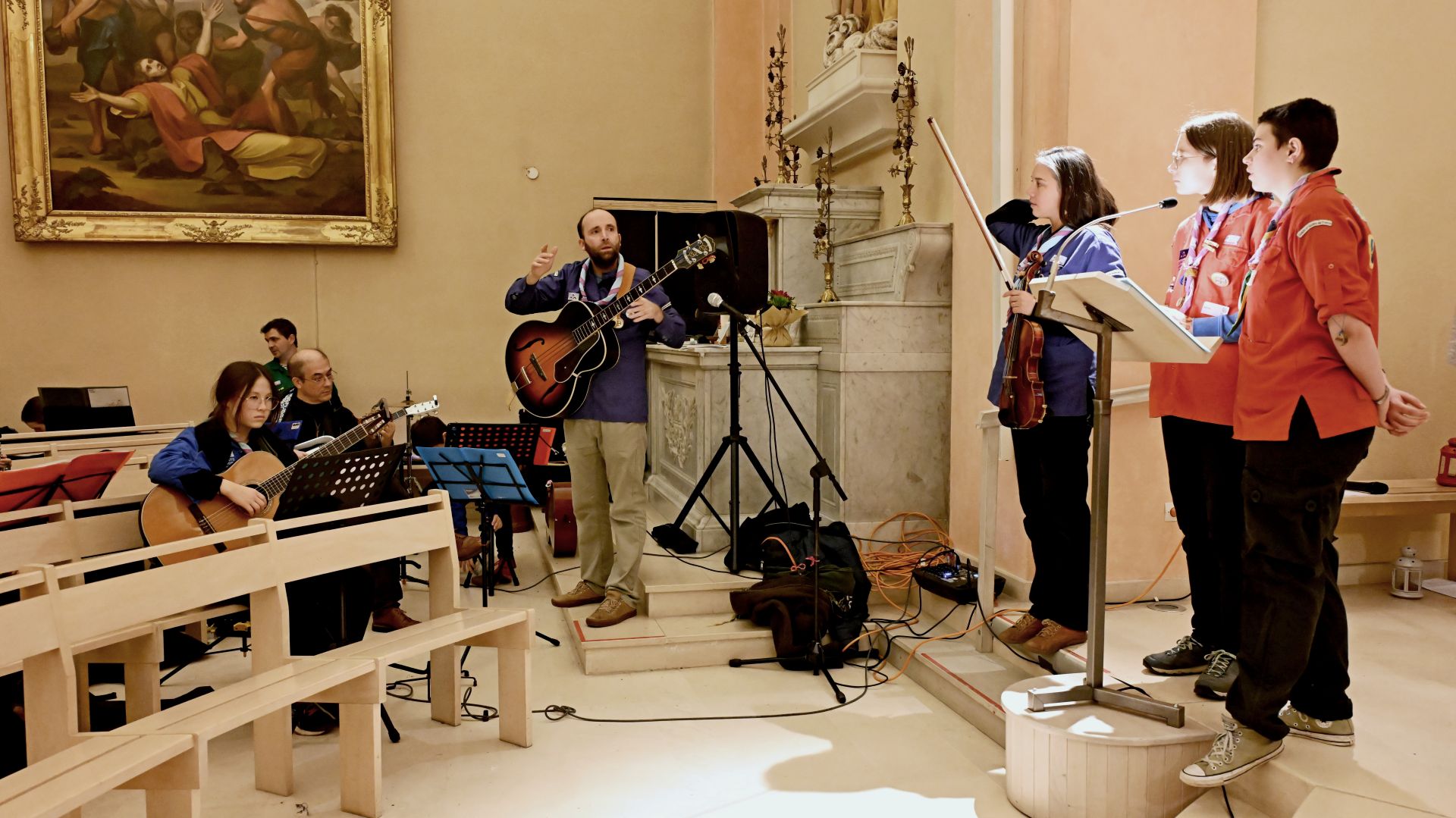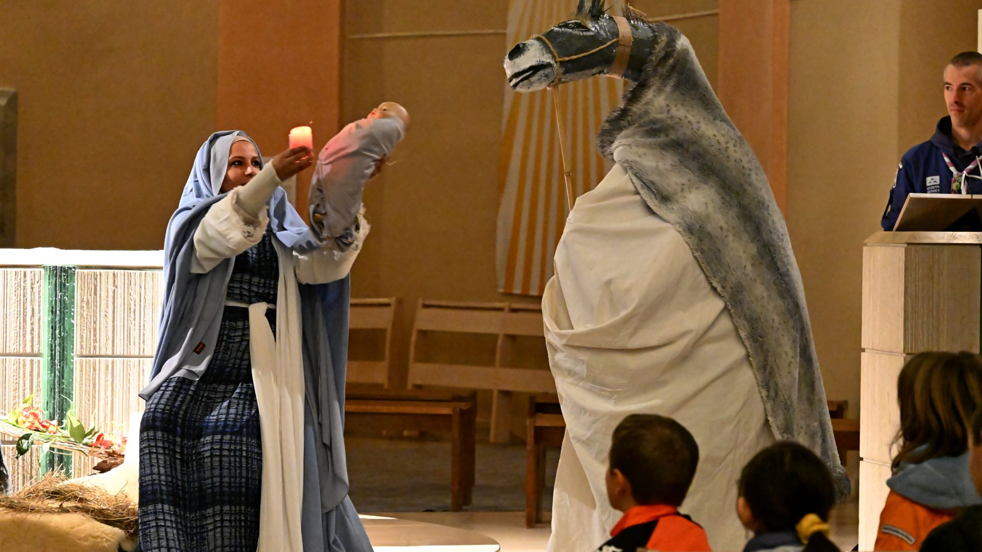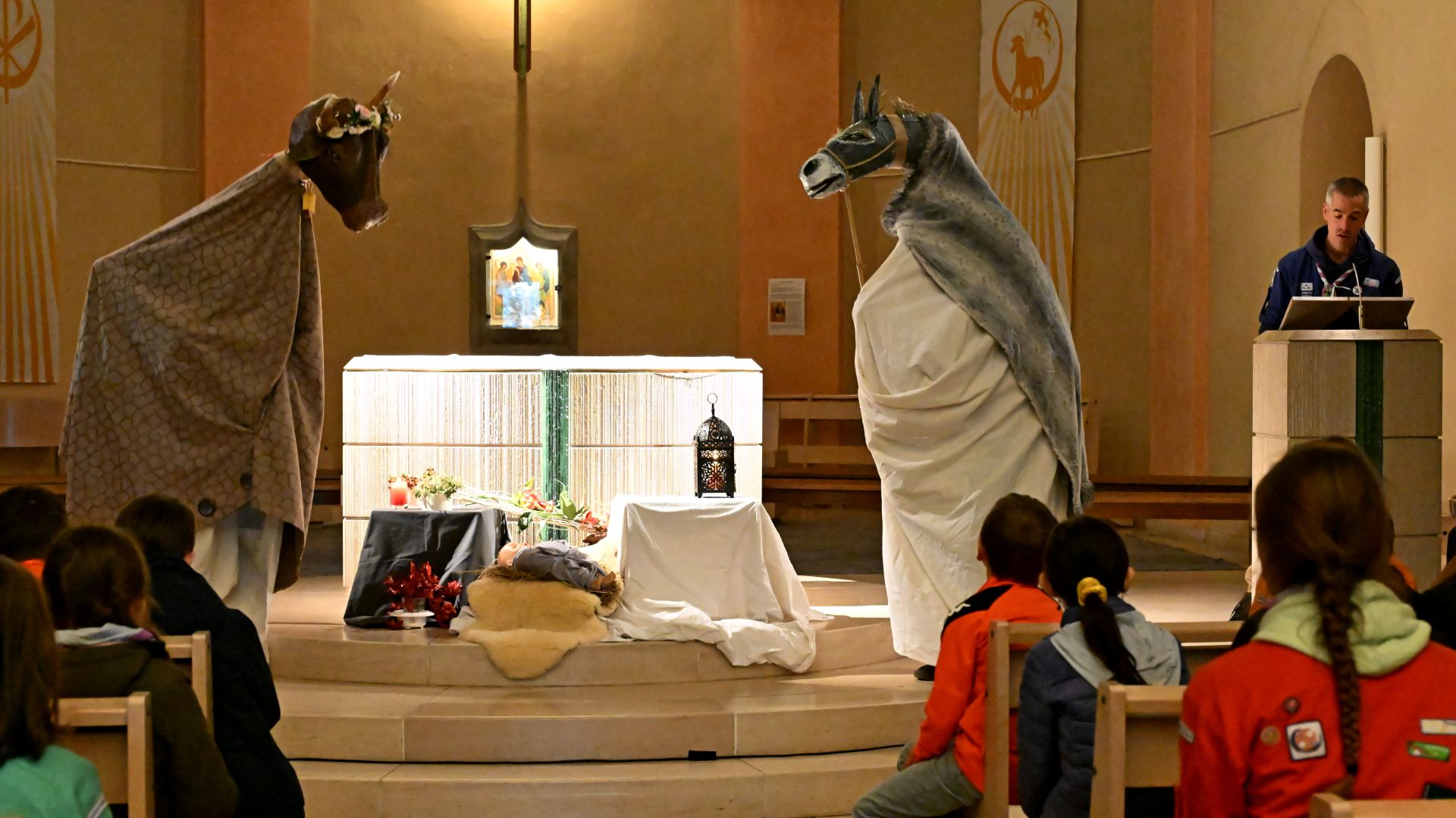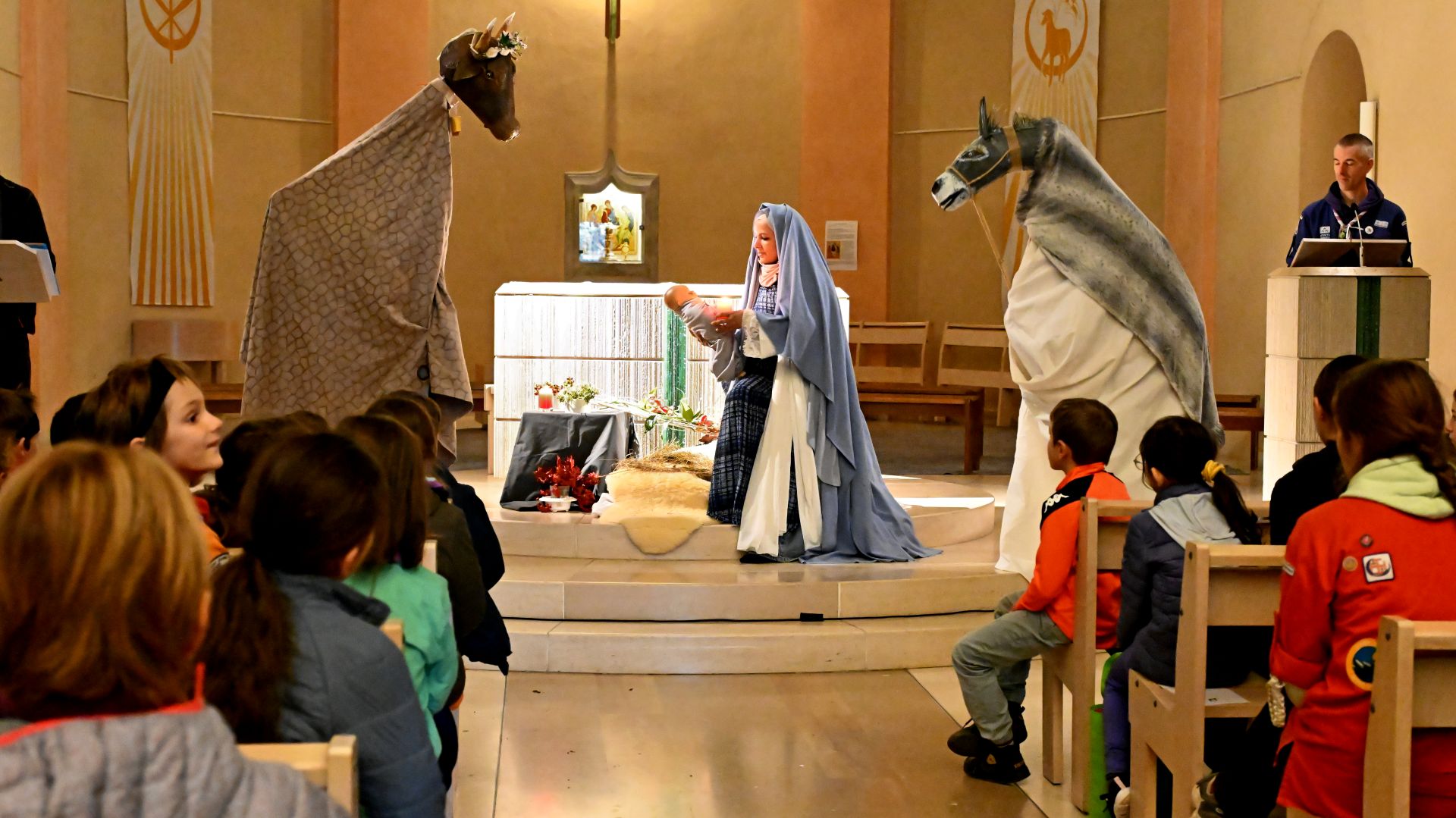 Les scouts donnent la lumière de Bethléem à l’assemblée.