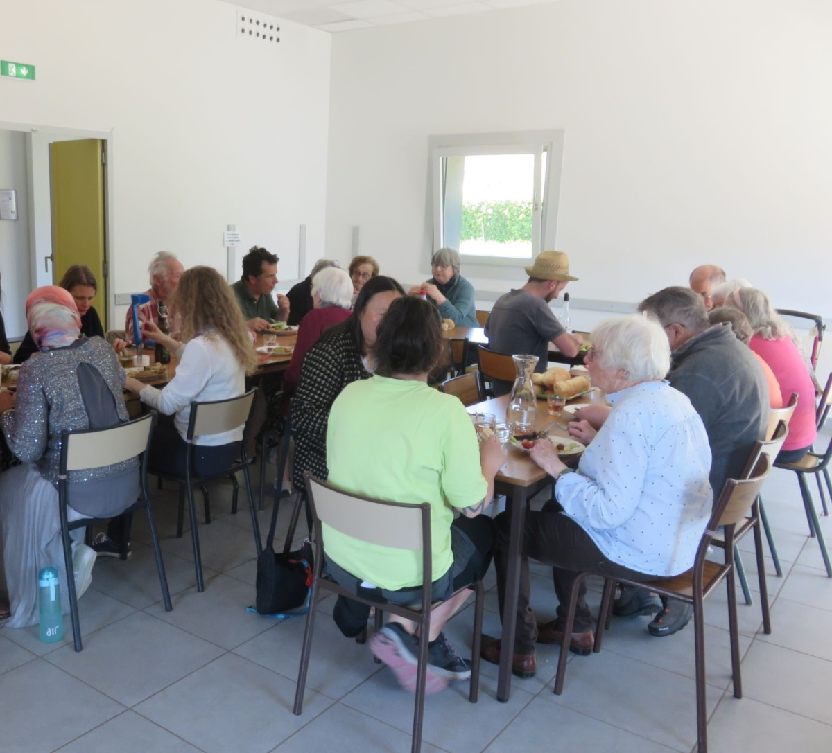 Le partage du repas : nous étions nombreux ! Une cinquantaine de personnes de tout âge, dont un grand nombre venait pour la 1re fois, avec des plats aussi succulents les uns que les autres !