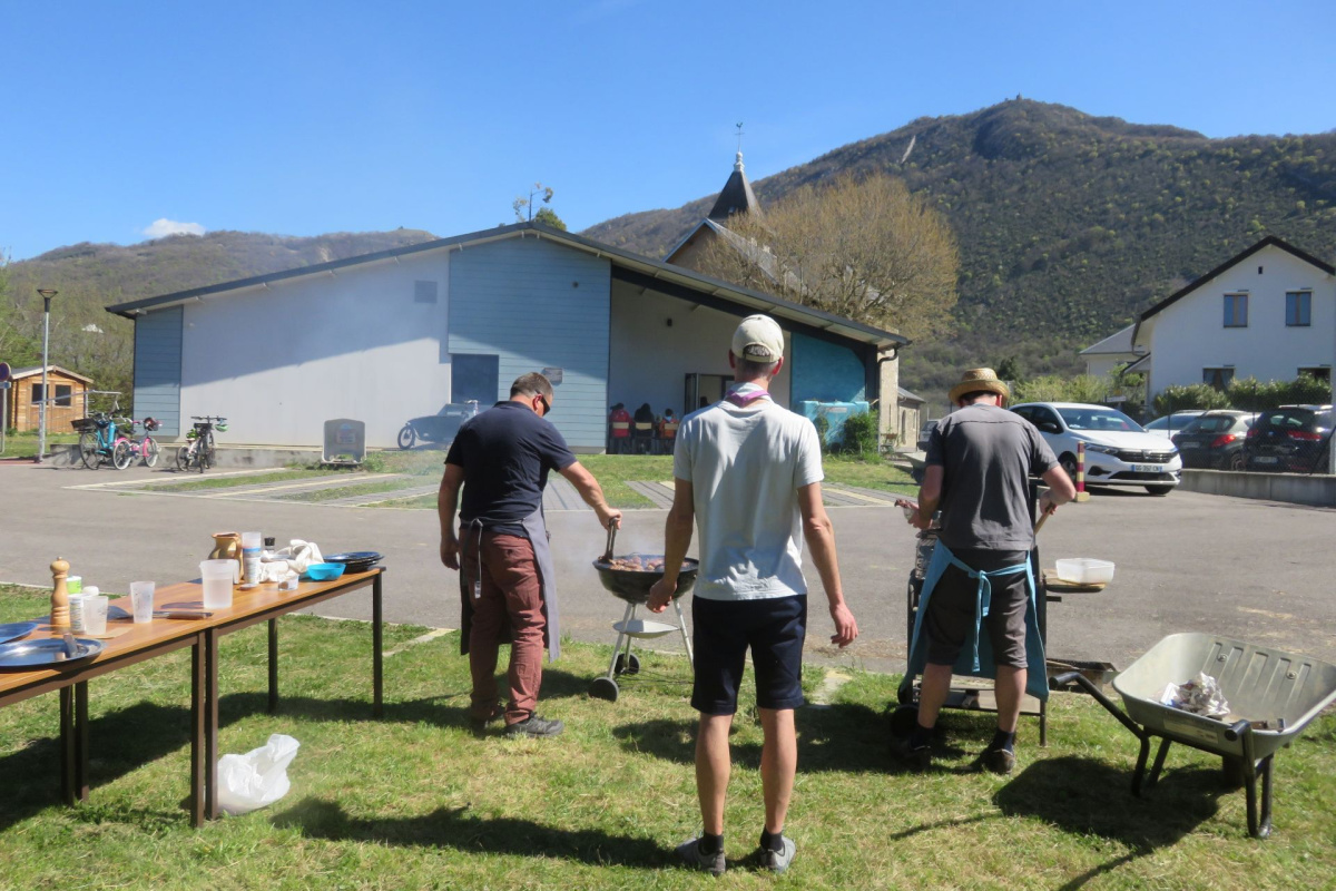 Avec la présence de plusieurs familles scoutes chantant Ressucito avec entrain à la sortie de la messe, puis préparant un délicieux barbecue pour le repas partagé